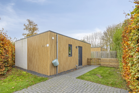 Achterin de tuin staat een ruime, vrijstaande houten berging. Perfect voor het stallen van fietsen en tuingereedschap, of als werkplek voor uw hobby.